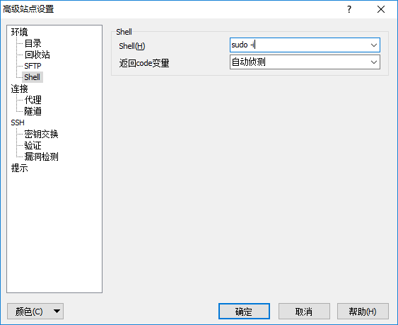 如上图设置shell,在shell里面填入sudo -i即可。点击确定,点击登录连接到服务器,到此我们就以root用户连接到了服务器,这时候我们就可以正常的上传文件了。