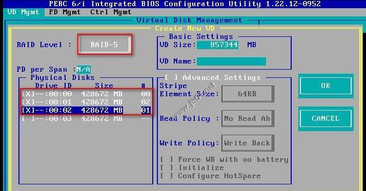 3、为数据盘配置单盘RAID 0:将每块数据盘单独配置为RAID 0,提高数据读写速率。