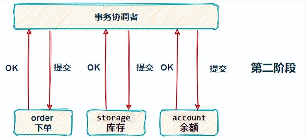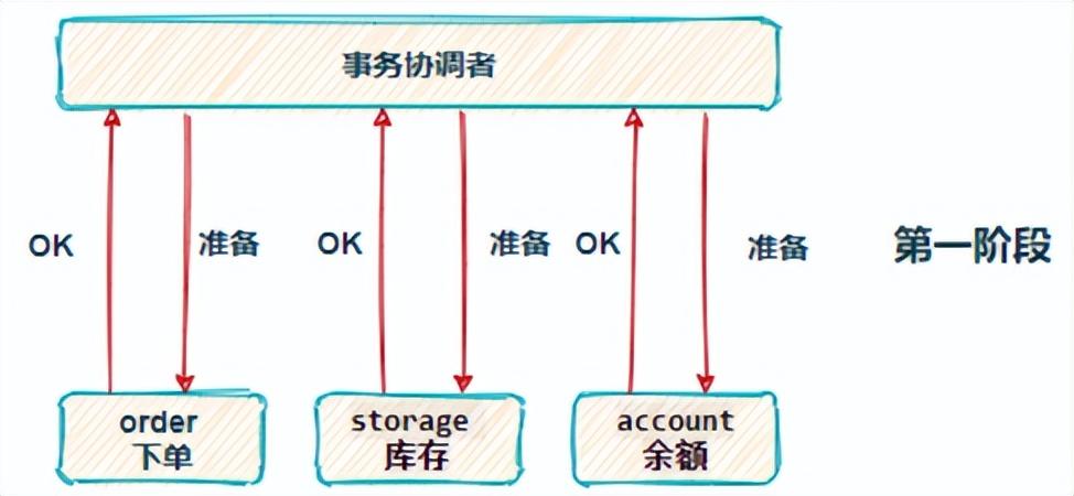当用户再次下单时,需同时对订单库 order、库存库 storage、用户库 account 进行操作,可此时我们只能保证自己本地的数据一致性,无法保证调用其他服务的操作是否成功,所以为了保证整个下单流程的数据一致性,就需要分布式事务介入。