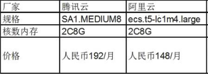 在价格方面,由于厂商都有不同的层次的产品,我们就拿阿里云腾讯云各自的入门产品t5、SA1做对比: