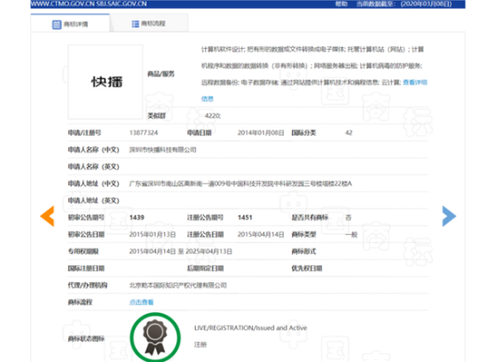 4月13日-14日,深圳市快播科技有限公司(快播公司)名下234项商标进行了公开拍卖。起拍价4.5万元,经过400多次竞买,最终以950万元成交。