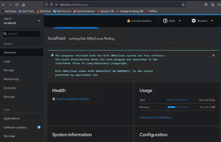 Cockpit 旨在与各种 Linux 发行版配合使用,包括 CentOS、基于 Debian 的系统(例如Ubuntu和 Kali-Linux)、Red Hat Enterprise Linux (RHEL) 和 Fedora。