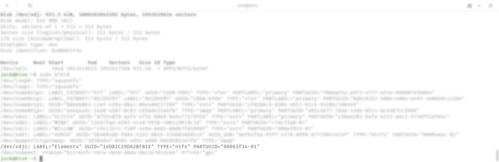 接下来,我们需要找到驱动器的UUID(通用唯一标识符)。为此,请发出命令: